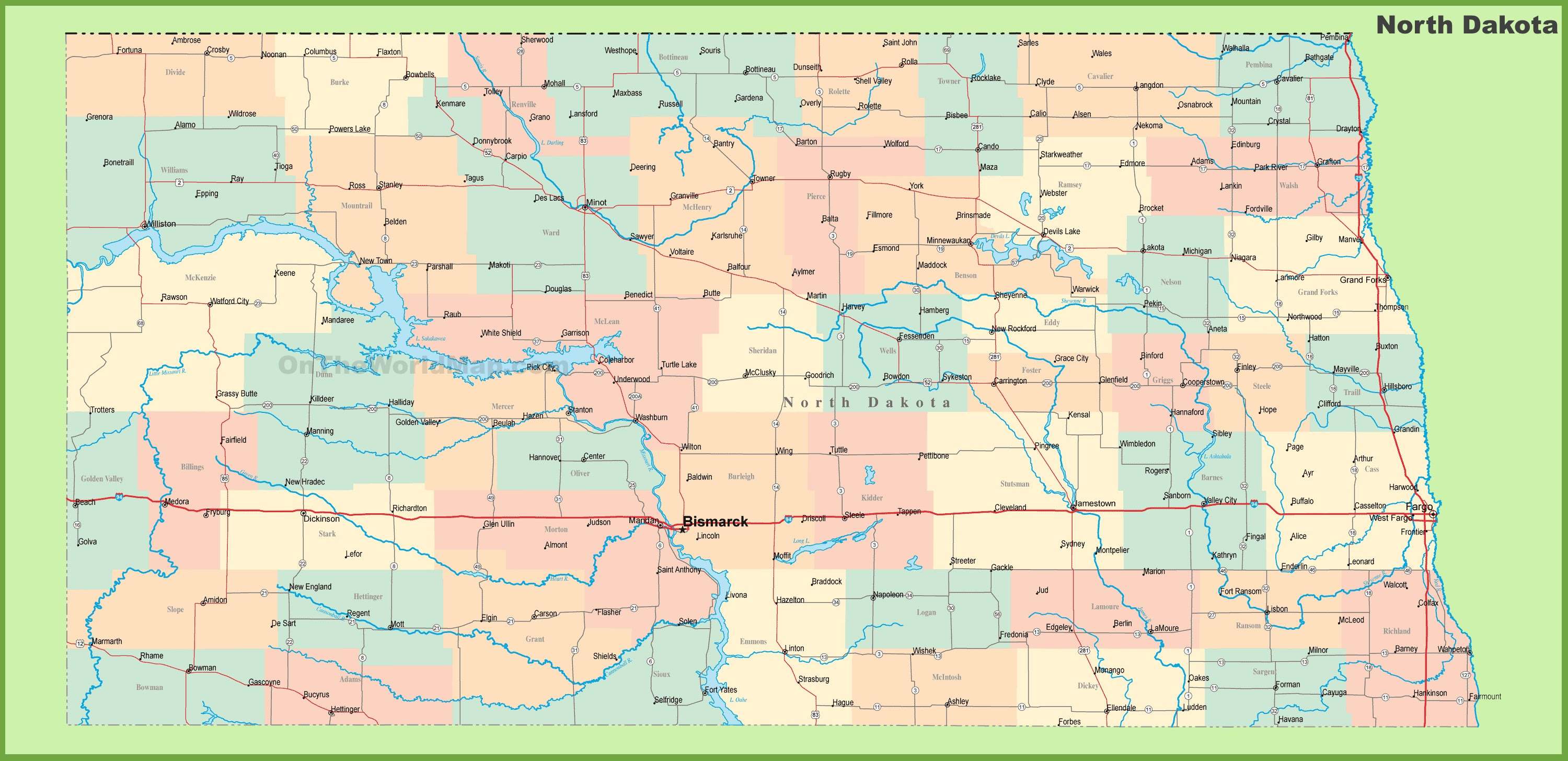North Dakota County Map